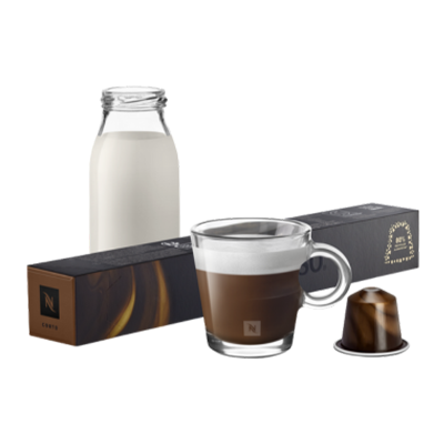 Corto with a dash of milk, and let this powerful, dark roasted blend of African Arabicas and Robusta carry you away with its