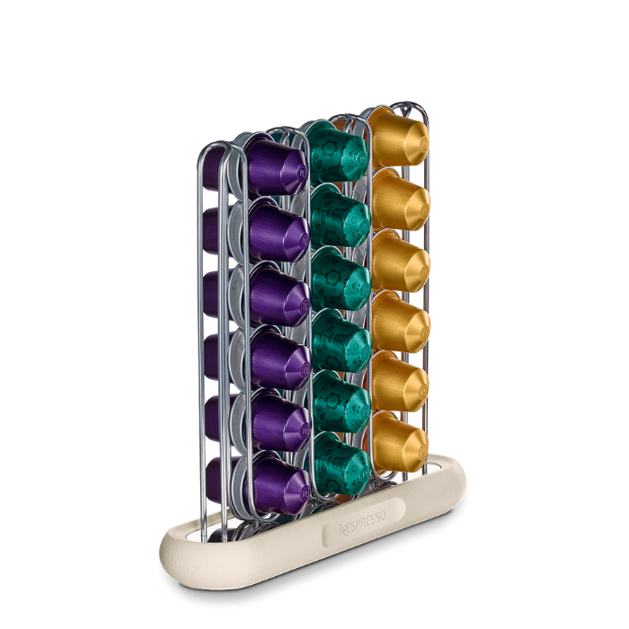 See elegantne kapslihoidja, mille on disaininud tunnustatud Itaalia disainer Federica Biasi, lisab teie kohvinurgale luksuslikku aktsendi. Roostevabast terasest hoidjate ja kunsttravertiinist alusega hoidik on ideaalne teie lemmik Nespresso kapslite hoiustamiseks, samal ajal kui selle kompaktne suurus täiendab stiilselt interjööri.