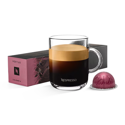 Proovige Master Origin Colombia pestud Araabika kohvi piimaga - selles Vertuo kohvis piimaga kerkivad esile magusad ja kreemised karamellinoodid.